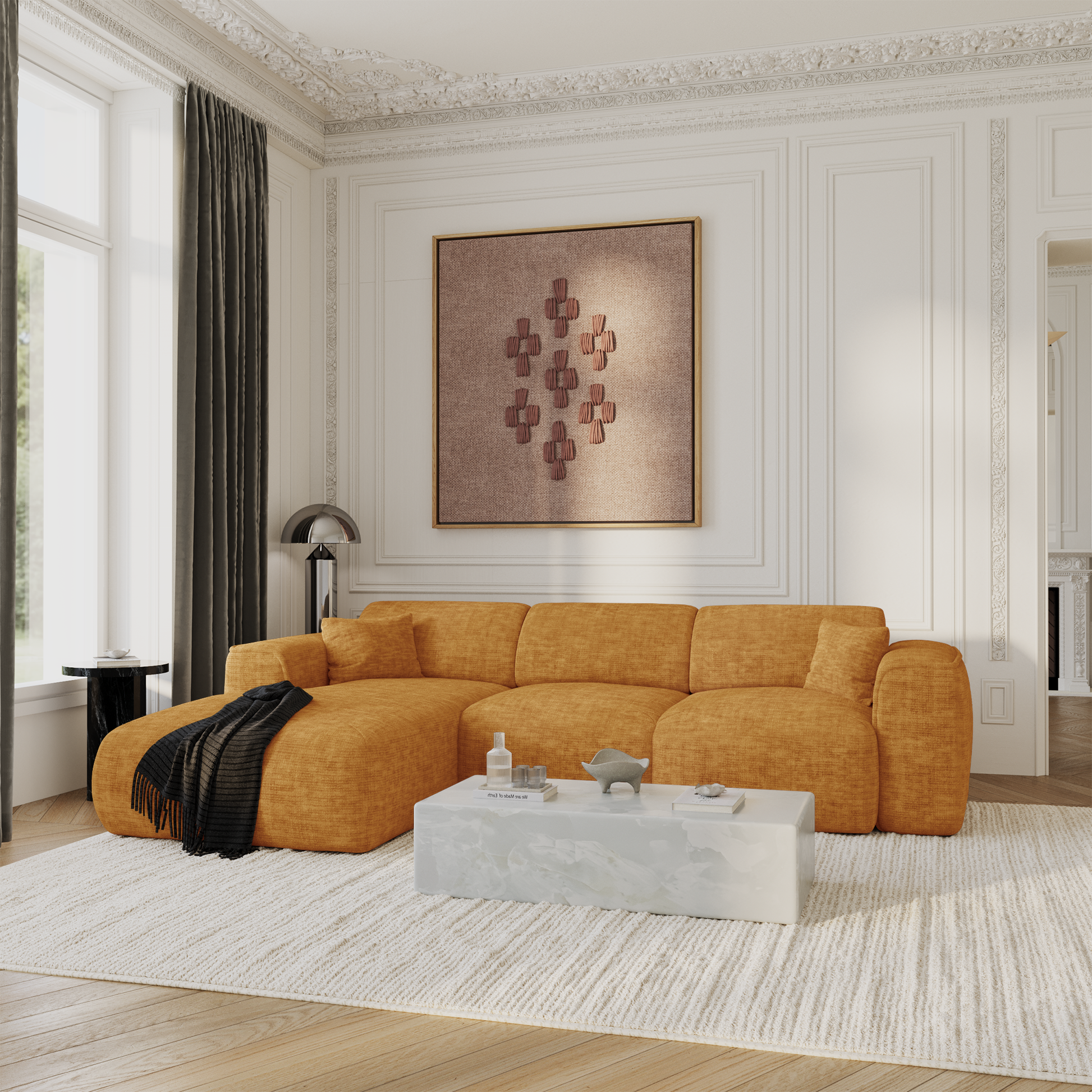 Nos produits sont fabriqués à la main negli atelier di prestigio europei da parte degli artigiani tapissiers. La qualità del servizio del design: l'insieme dei componenti è stato accuratamente selezionato e testato per garantire comfort, longevità e robustezza per un utilizzo quotidiano del prodotto.