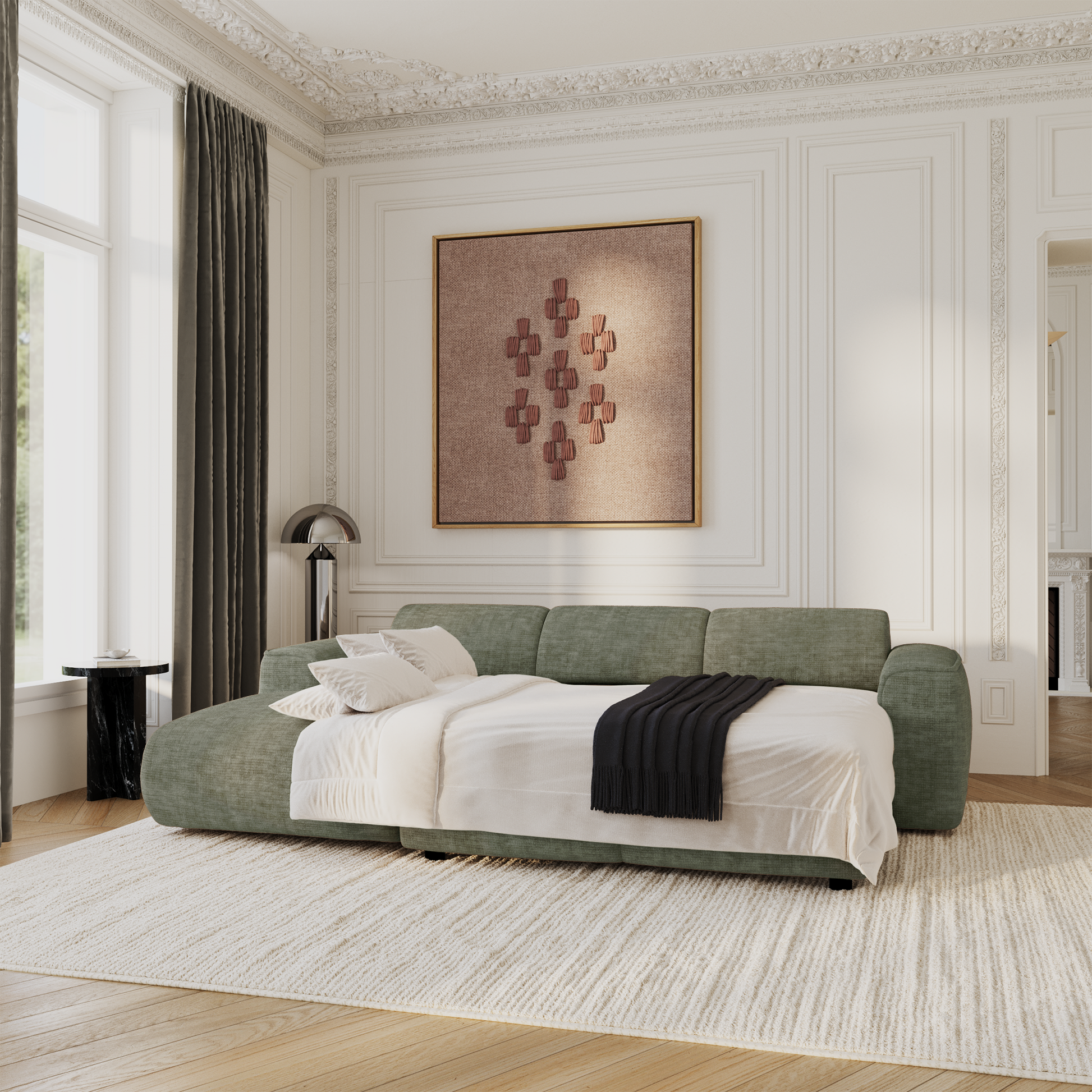 Scopri YUMA, le canapé che coniuga confort assoluto, linee scultoree e ingegno invisibile: in un solo movimento fluido, il se déploie en un couchage généreux, senza compromessi sull'estetica.