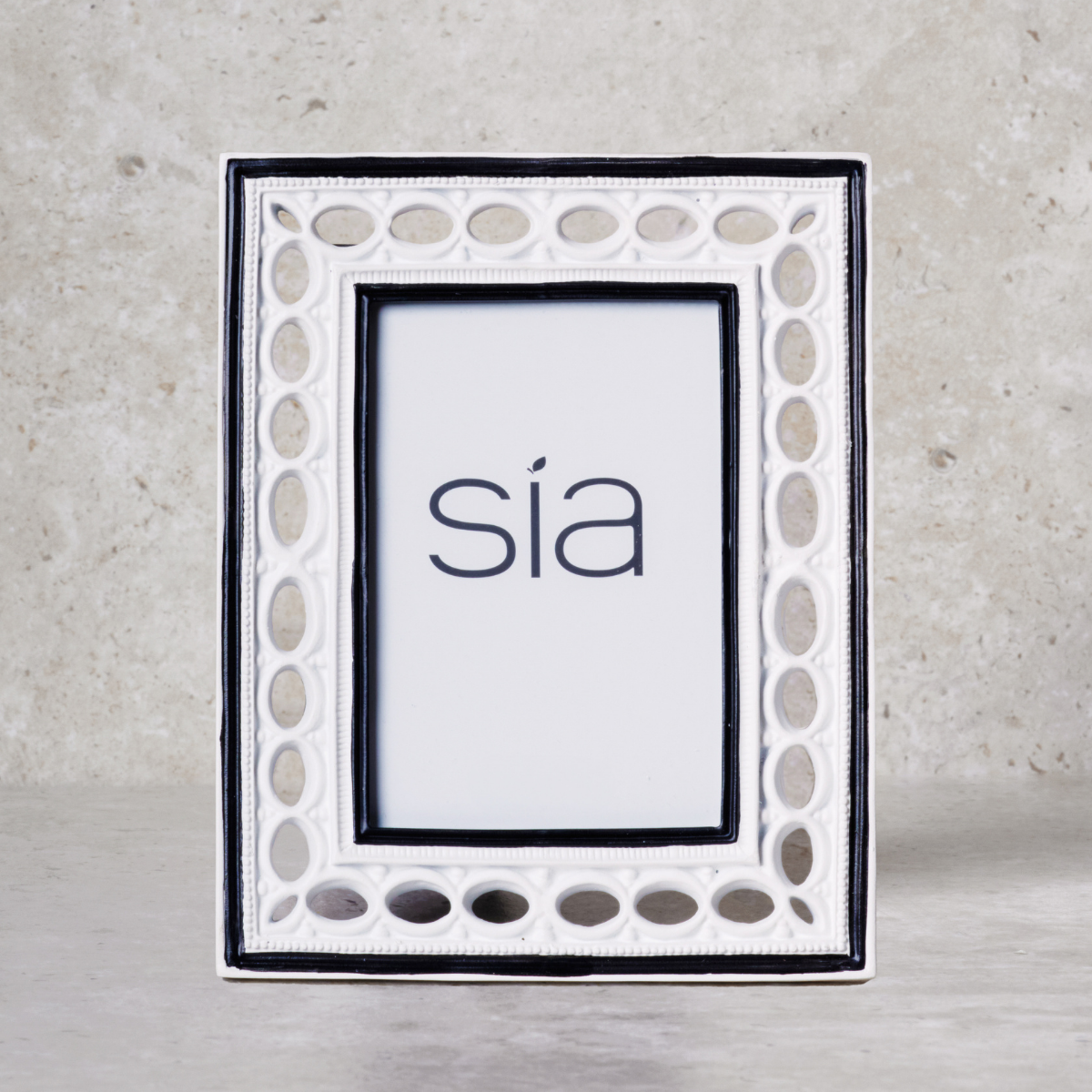 Quadro foto NORD in poliresina. Immortala i tuoi bellissimi souvenir in questo cadre nero e bianco con i bordi ajourées e i suoi contorni neri che sauront faire ressortir le tue più belle foto in formato ritratto. Ideale per una decorazione vintage o classica. Esiste en deux tailles.